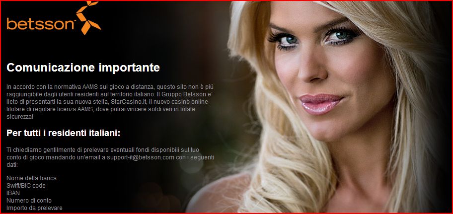 Betsson è una società svedese con licenza maltese che offre diversi prodotti di gioco: le scommesse sportive, sia come bookmaker che come intermediario del betting exchange; il poker; il casinò; ed il gratta e vinci. Il punto di forza di questa società è proprio la diversificazione dei prodotti di gioco offerti.